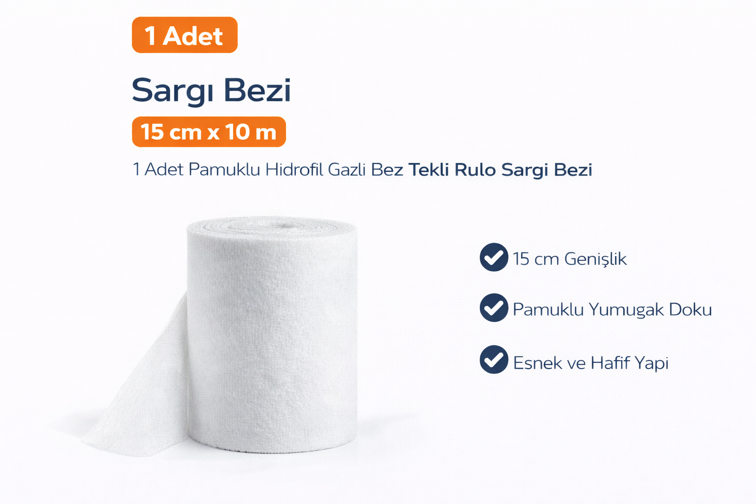 Sargı Bezi 15 cm x 10 m 1 Adet Pamuklu Hidrofil Gazlı Bez Tekli Rulo Sargı Bezi