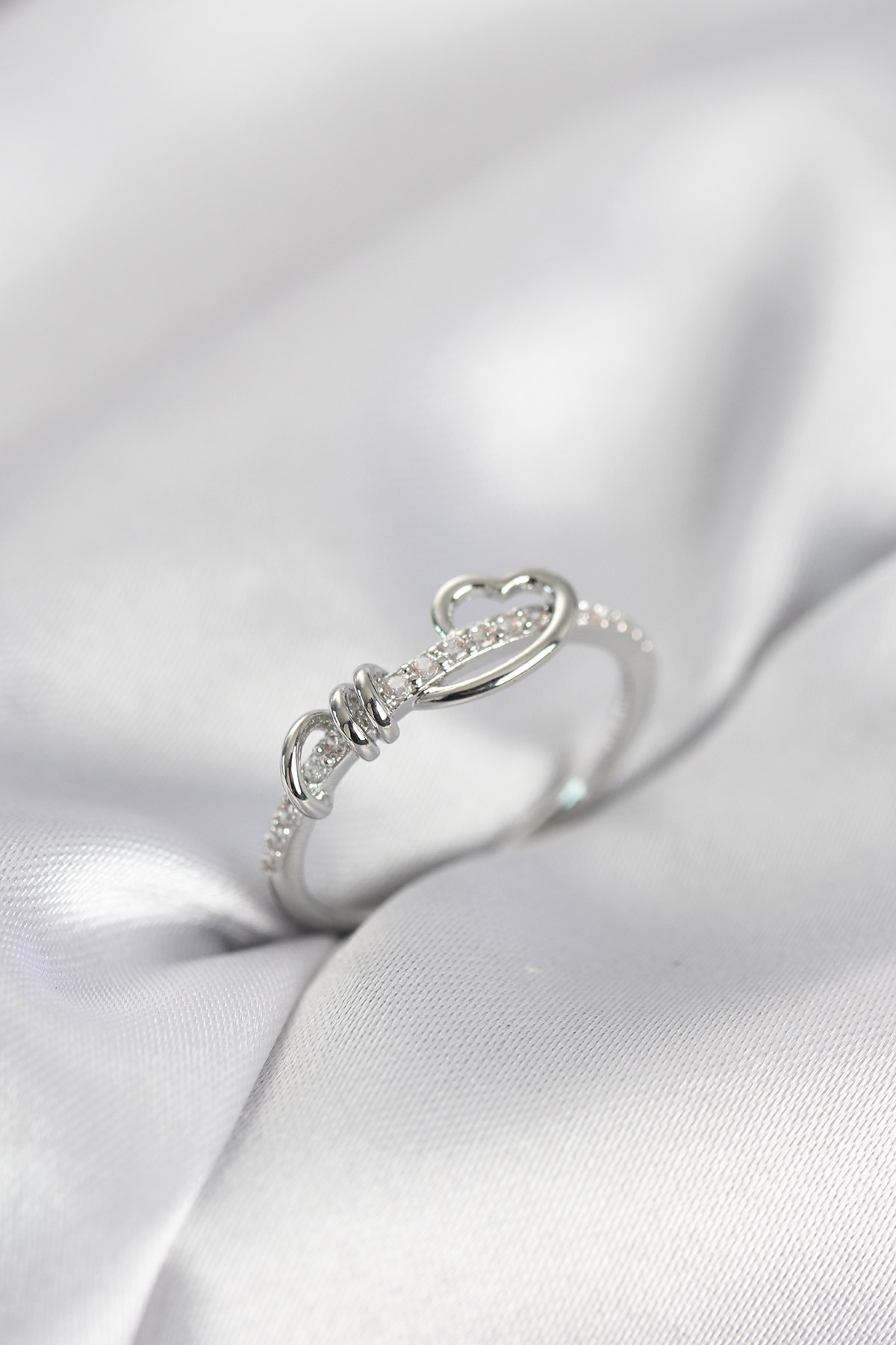 Sarmal Kalp Model Zirkon Taşlı Gümüş Renk Kadın Yüzük