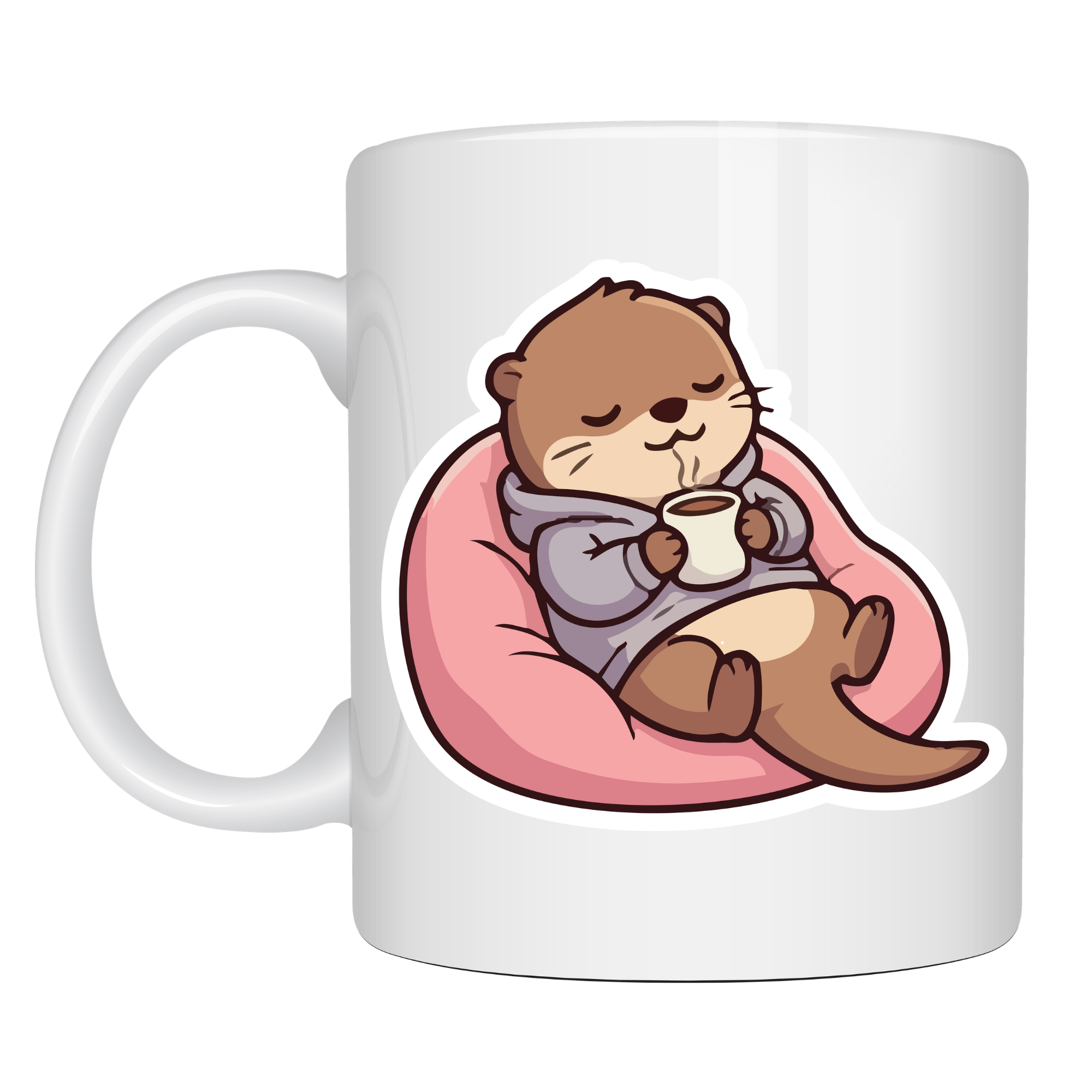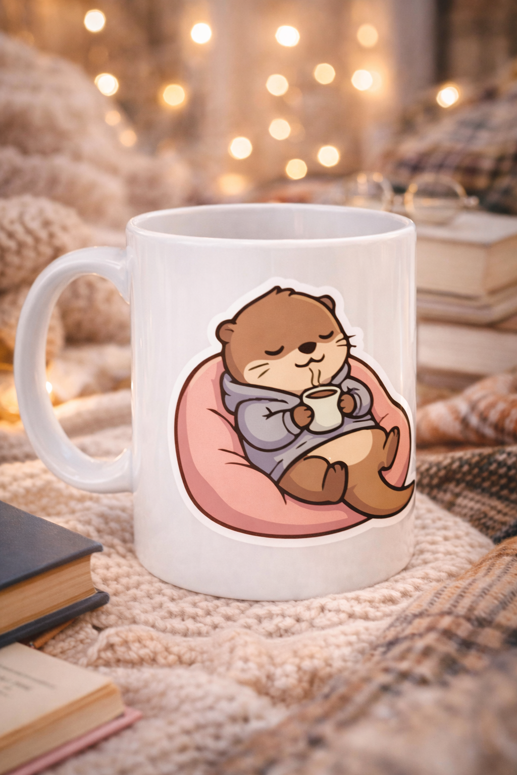 Sevimli Su Samuru Tasarımlı Porselen Kupa MODEL 191 – Kahve İçen Tatlı Su Samuru Kahve Kupası – Cozy Temalı Hediyelik Kupa Bardak