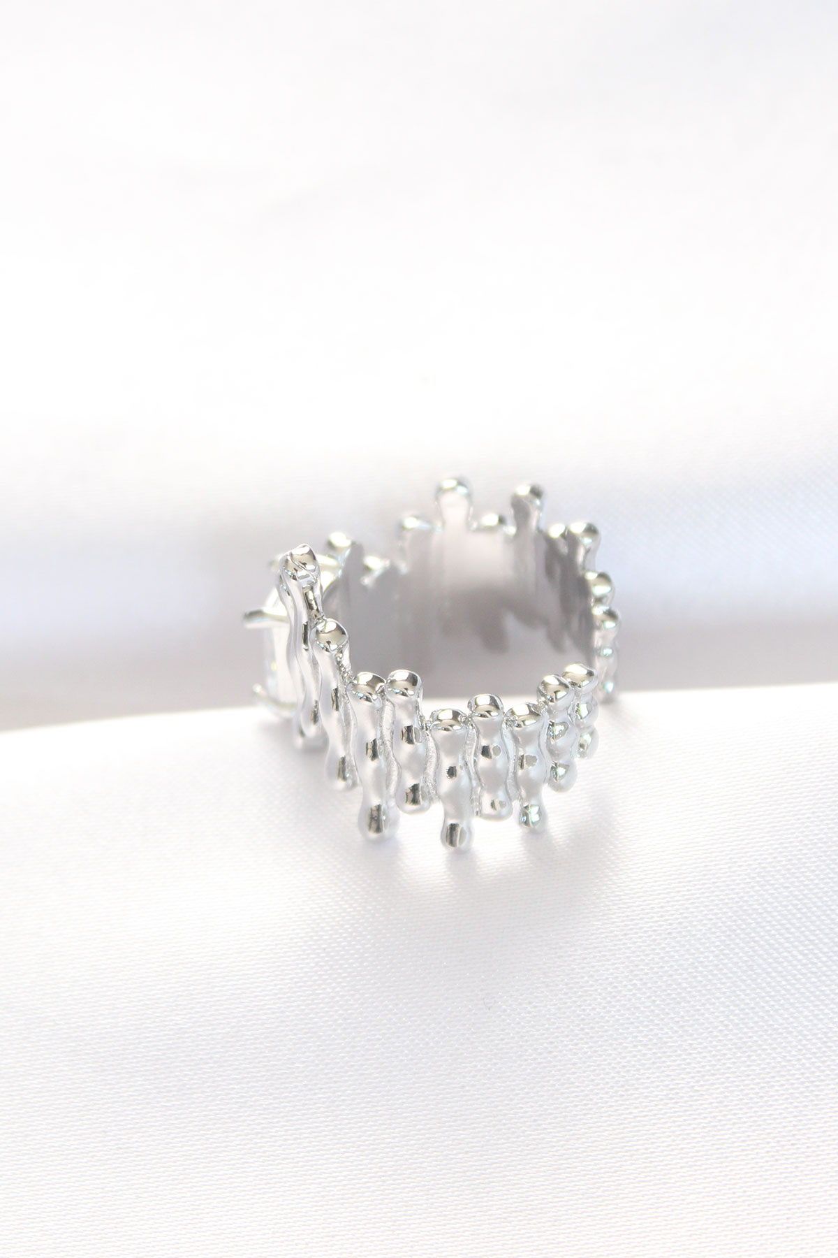 Silver Renk Tırtıklı Kalın Baget Taş Tasarım Ayarlanabilir Yüzük