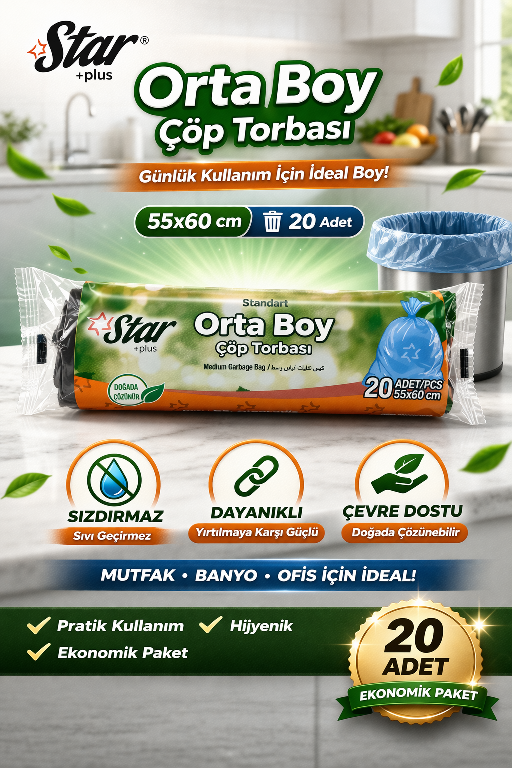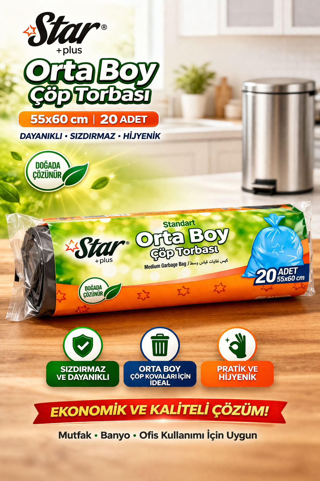 orta boy çöp torbası, 55x60 çöp torbası, 20 adet çöp poşeti, star plus çöp torbası, dayanıklı çöp torbası, sızdırmaz çöp poşeti, mutfak çöp torbası, banyo çöp torbası, ofis çöp poşeti, ekonomik çöp torbası, doğa dostu çöp torbası, orta boy çöp poşeti