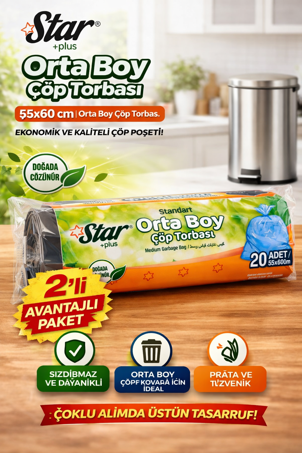 orta boy çöp torbası, 55x60 çöp torbası, 20 adet çöp poşeti, star plus çöp torbası, dayanıklı çöp torbası, sızdırmaz çöp poşeti, mutfak çöp torbası, banyo çöp torbası, ofis çöp poşeti, ekonomik çöp torbası, doğa dostu çöp torbası, orta boy çöp poşeti