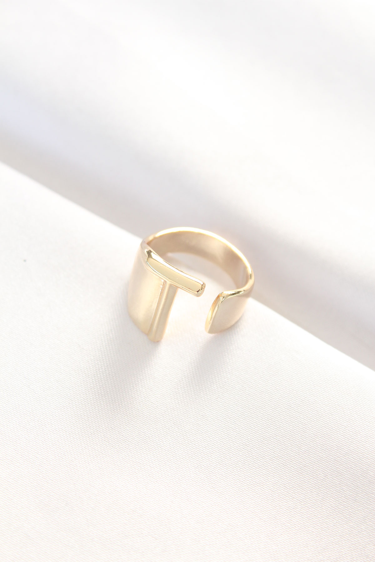 T Harfli Altın Renk Ayarlanabilir Yüzük