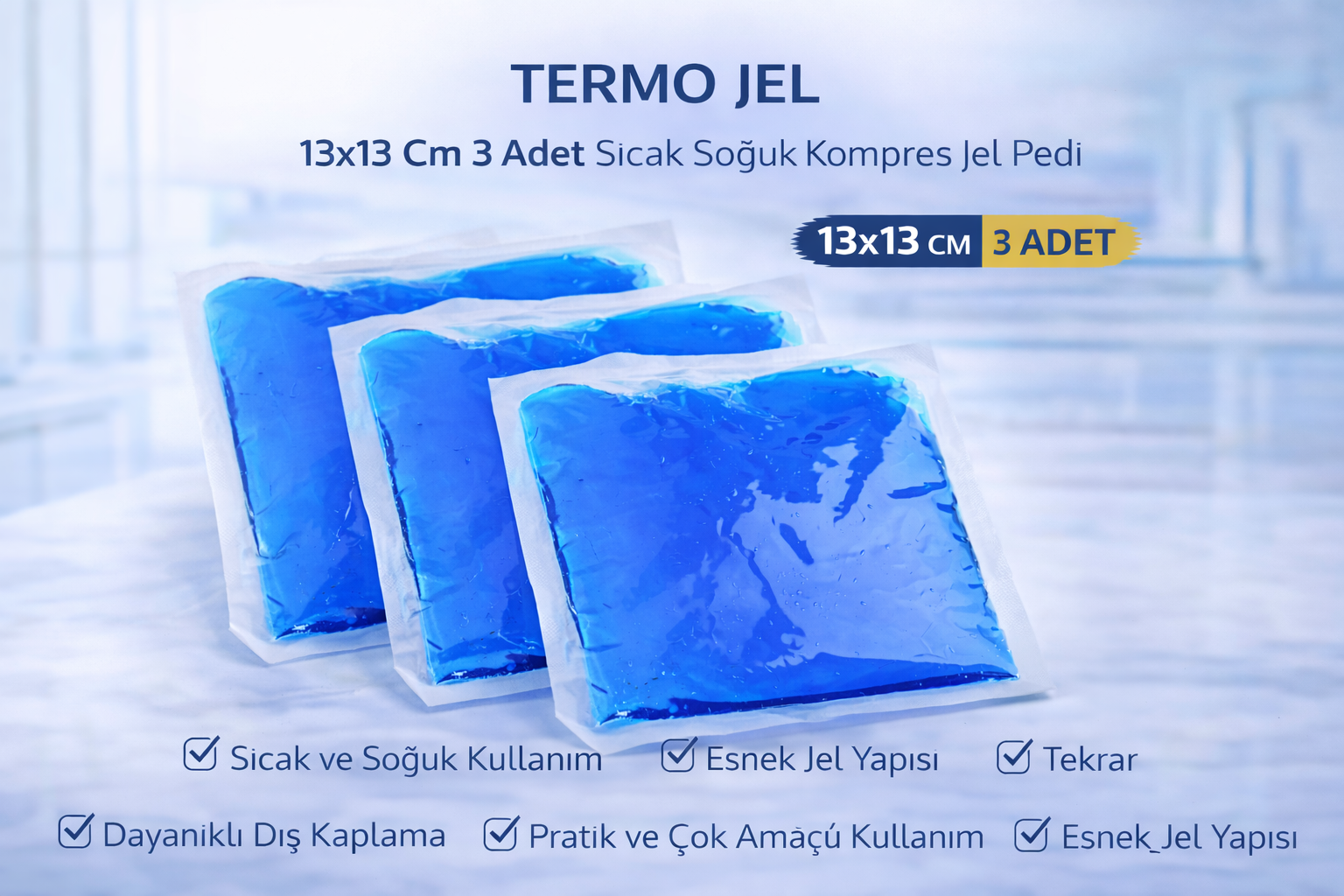 termo jel 13x13 cm, sıcak soğuk jel kompres, jel buz paketi, sıcak soğuk kompres pedi, jel kompres 3 adet, medikal termo jel, reusable jel kompres, soğuk kompres jeli, sıcak kompres jeli, jel buz torbası