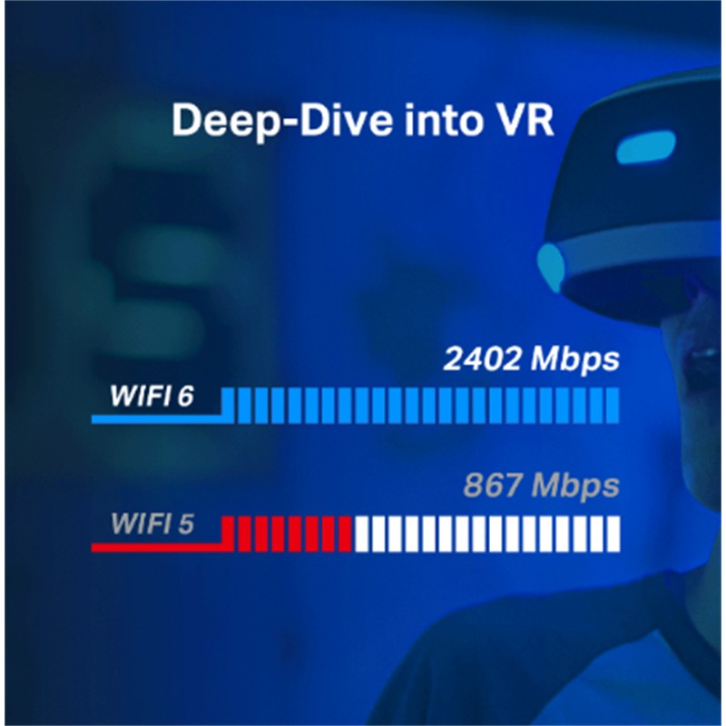 Anten: VarAçıklama: Rakipsiz Wi-Fi 6 Hızı— 2402 Mbps (5 GHz) + 574 Mbps (2.4 GHz) hızlarla gigabit bariyerini aşar.