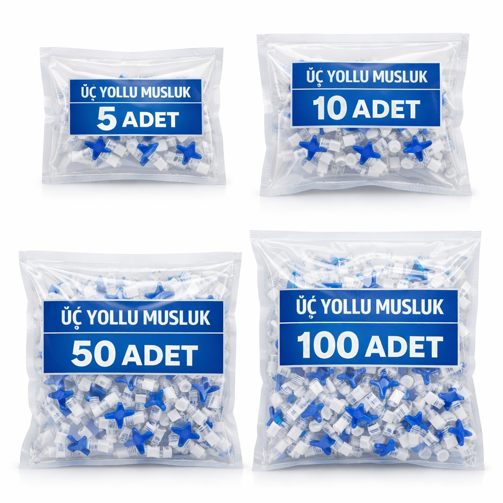 üç yollu musluk, medikal üç yollu musluk, steril üç yollu musluk, serum bağlantı aparatı, sıvı akış kontrol musluğu, medikal musluk bağlantı, üçlü musluk, üç yollu musluk 5 adet, üç yollu musluk 10 adet, üç yollu musluk 50 adet, üç yollu musluk 100 adet, hastane tipi üç yollu musluk