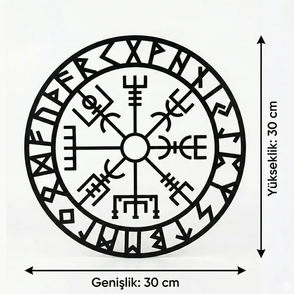 Viking pusulası (Vegvisir) duvar tablosu, MDF malzemeden üretilmiş güçlü ve karakterli tasarımıyla yaşam alanlarınıza dikkat çekici bir atmosfer kazandırır. Nordik kültürün en bilinen sembollerinden biri olan Vegvisir tasarımı, bulunduğu ortama anlam ve derinlik katar.
