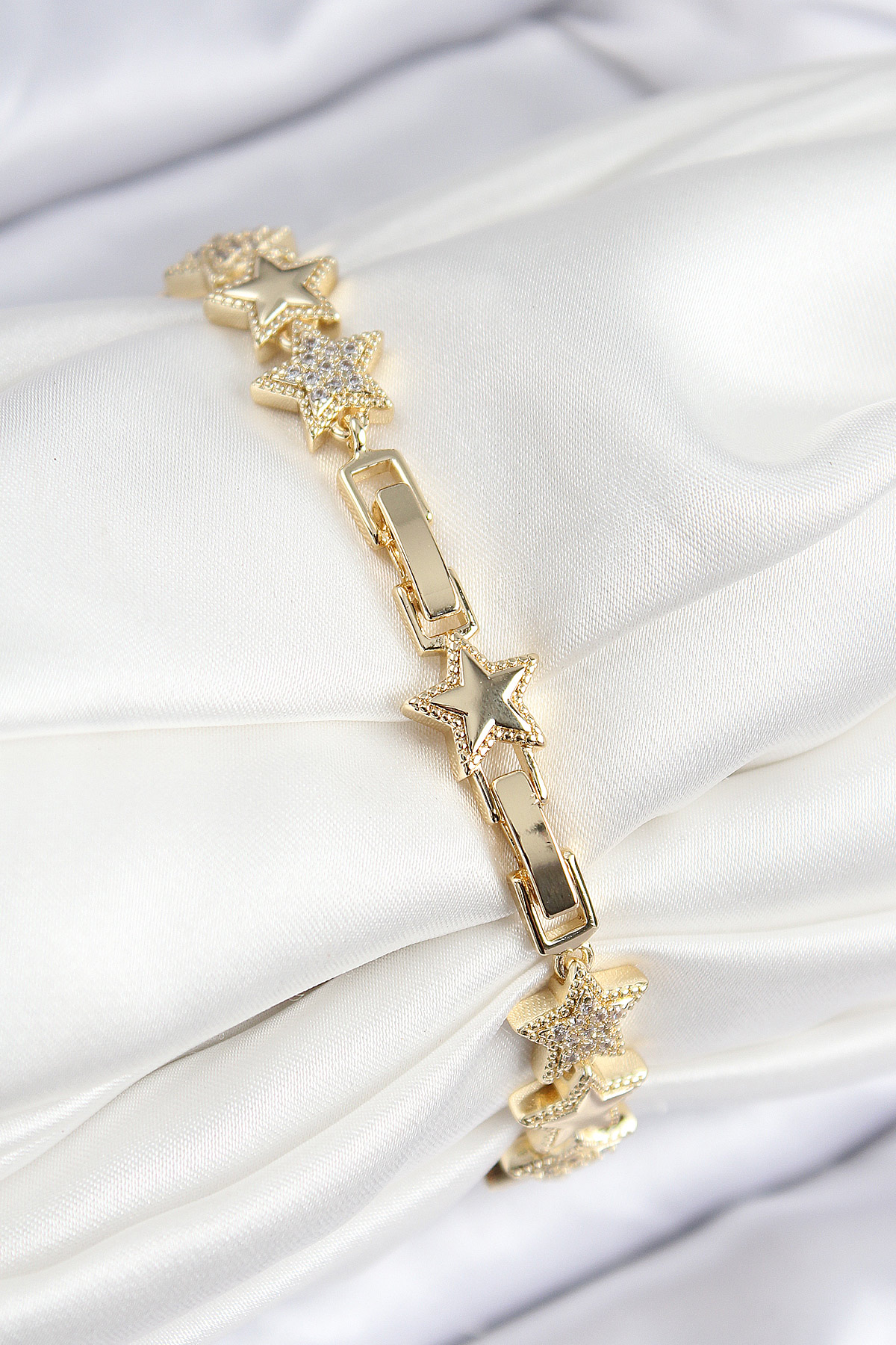 VIP Pirinç Zirkon Taşlı Yıldız Model Gold Renk Kadın Bileklik