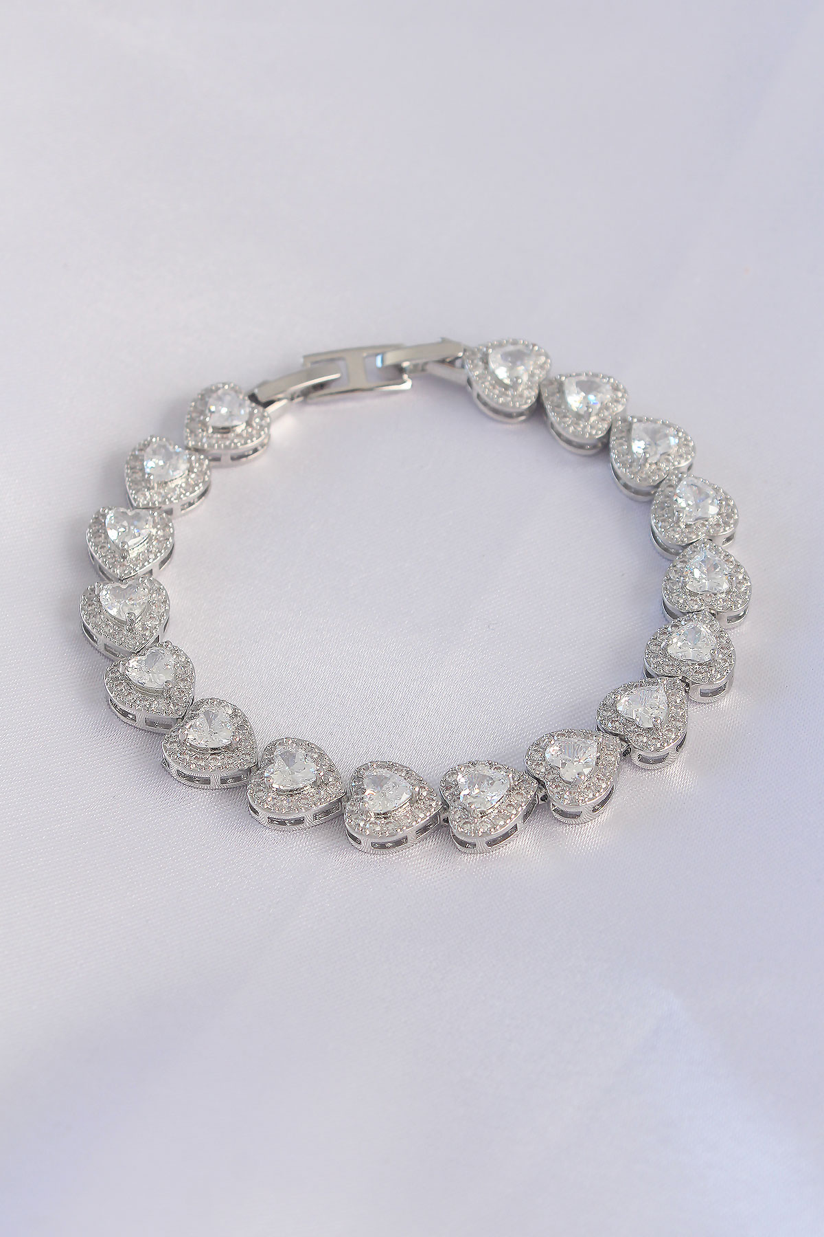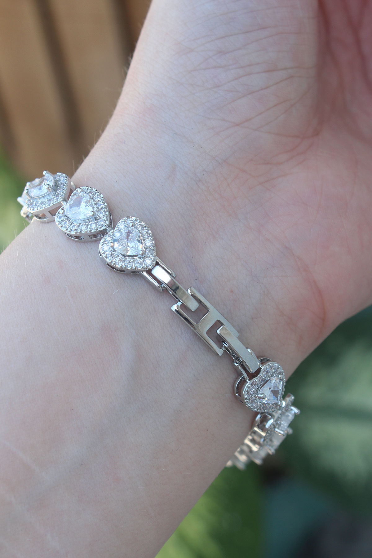 Vip Seri Pirinç Zirkon Taşlı Gümüş Renk Kalp Model Bileklik