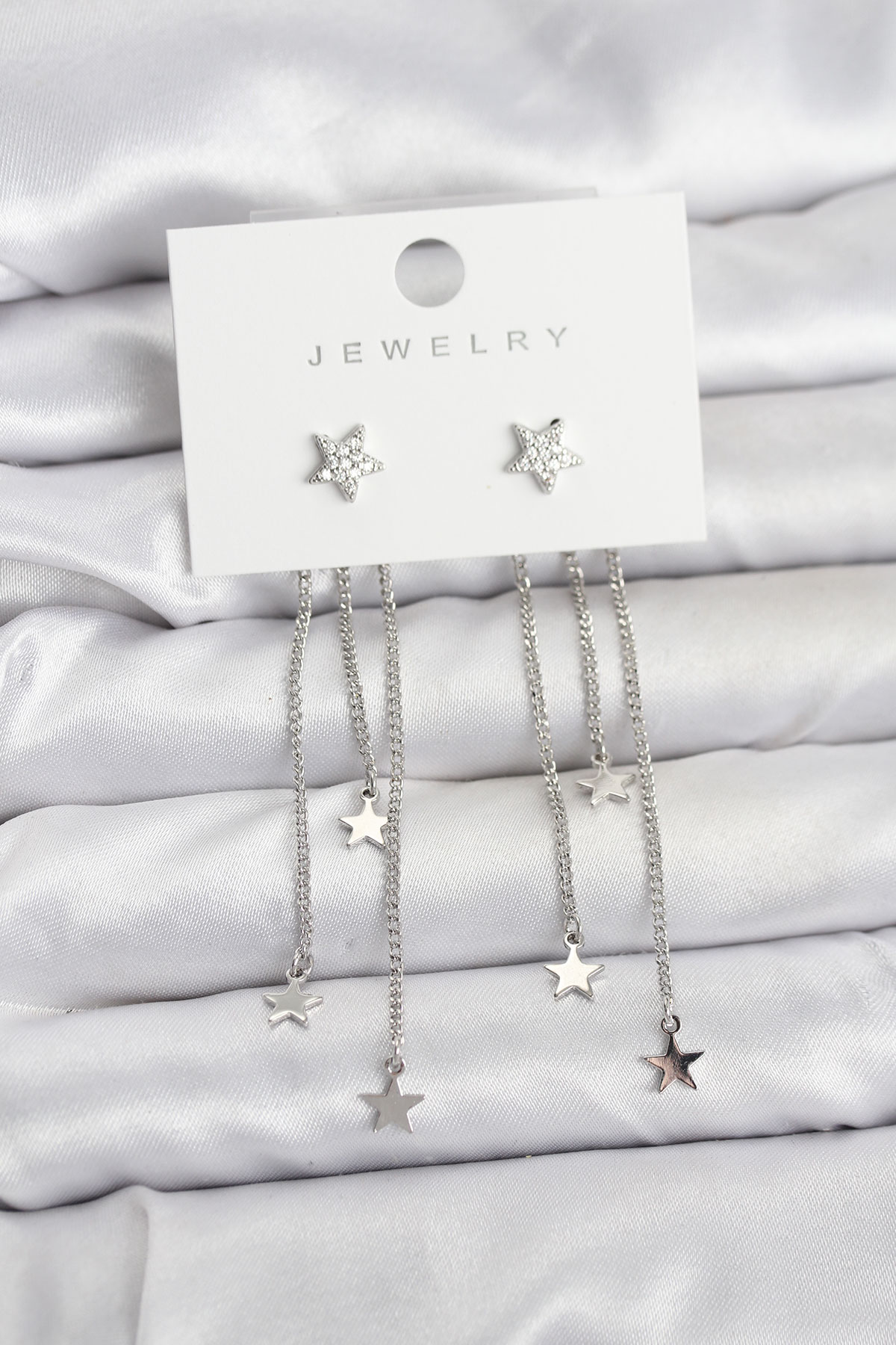 Yıldız Model Gümüş Renk Pirinç Sallantılı Kadın Küpe
