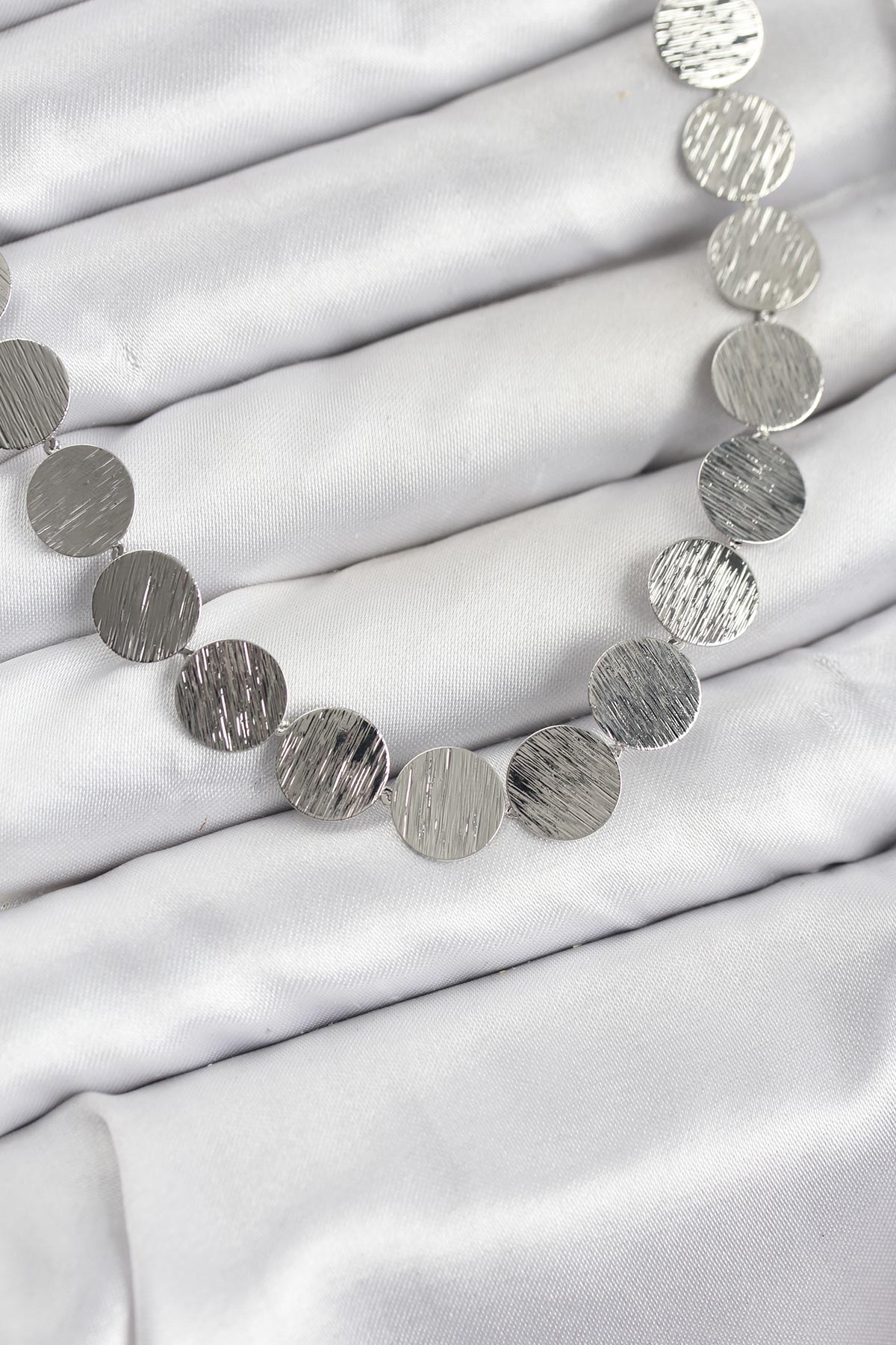 Yuvarlak Plaka Model Gümüş Renk Kadın Kolye