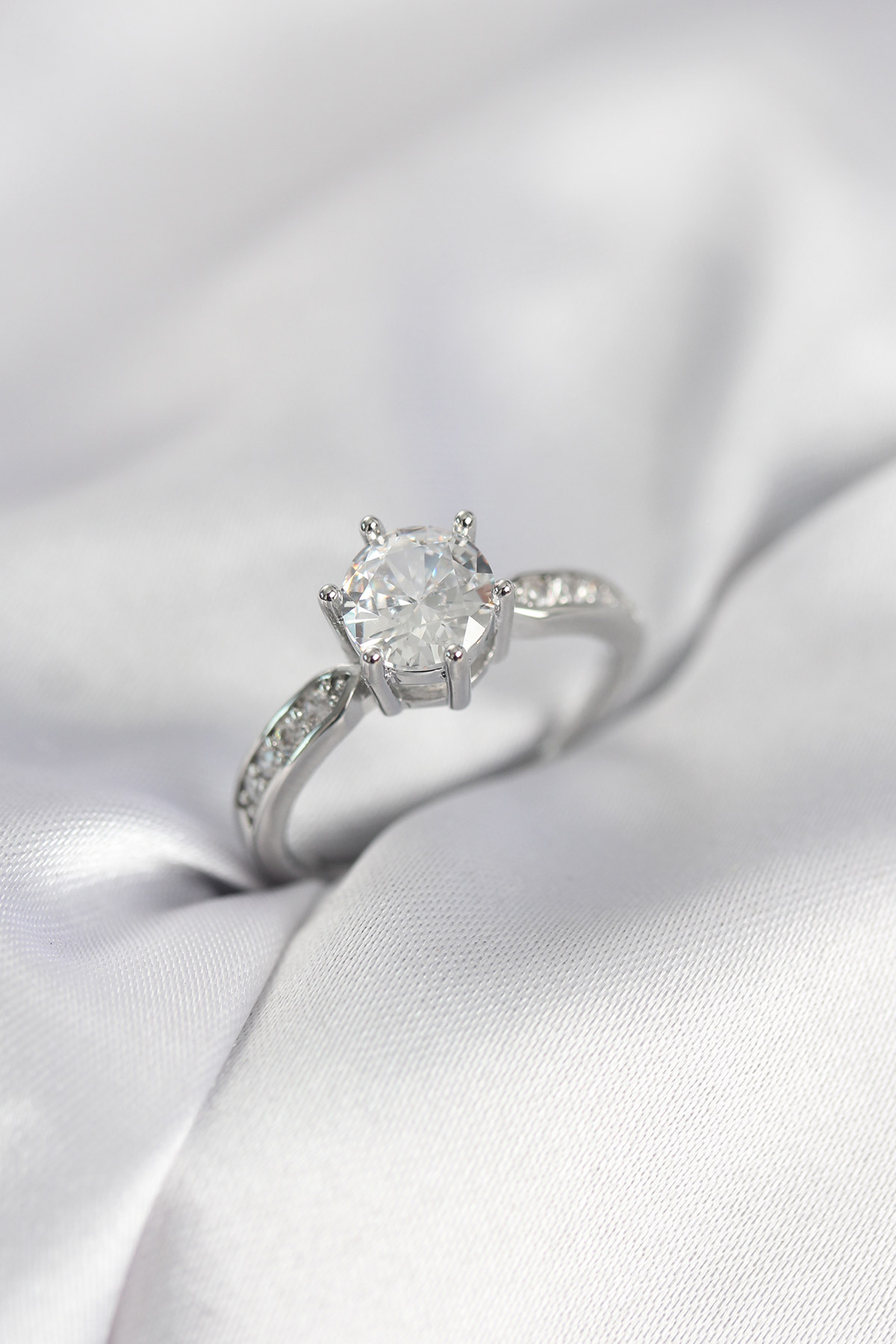 Zirkon Taşlı Tek Taş Model Gümüş Renk Kadın Yüzük
